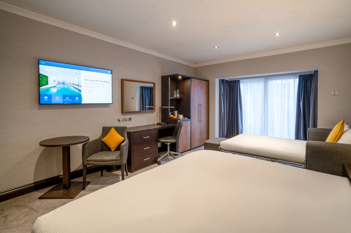 A comfortable Double or Twin Room, offering everything you need for a restful and enjoyable stay. Filled with natural light and stylish décor, it provides the convenience of complimentary Wi-Fi, a private en-suite bathroom, and in-room essentials including a television and other modern features. The room also presents a cosy carpeted layout and thoughtful details designed to make you feel at home.