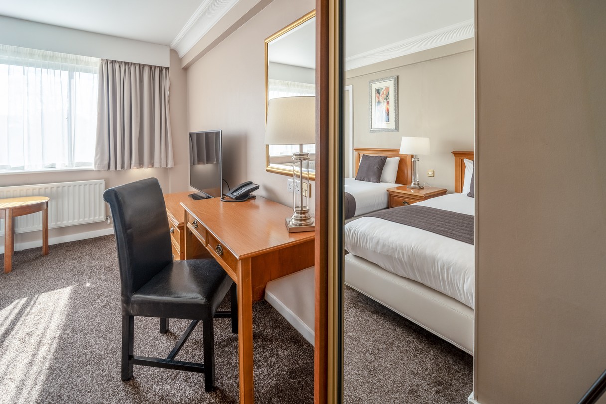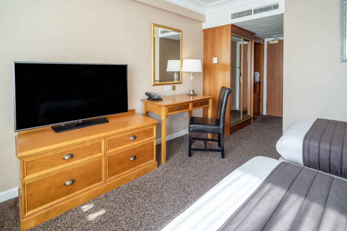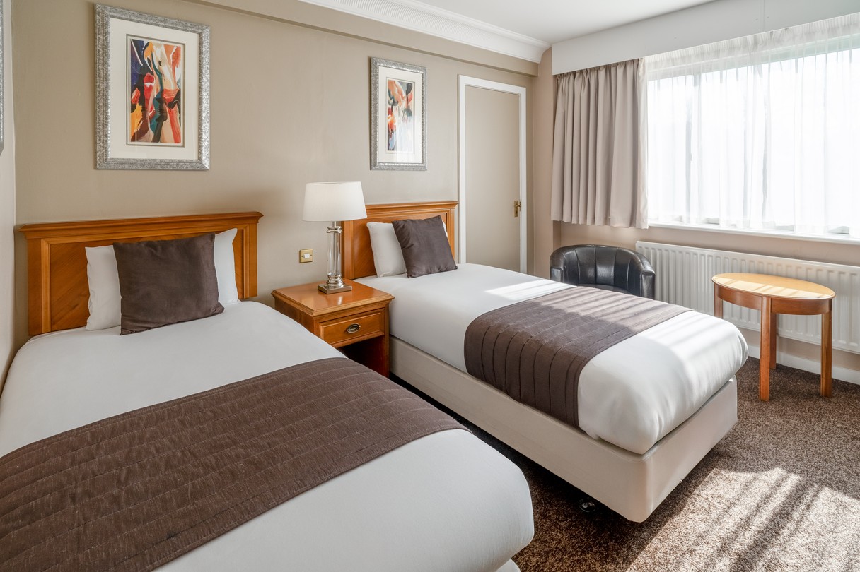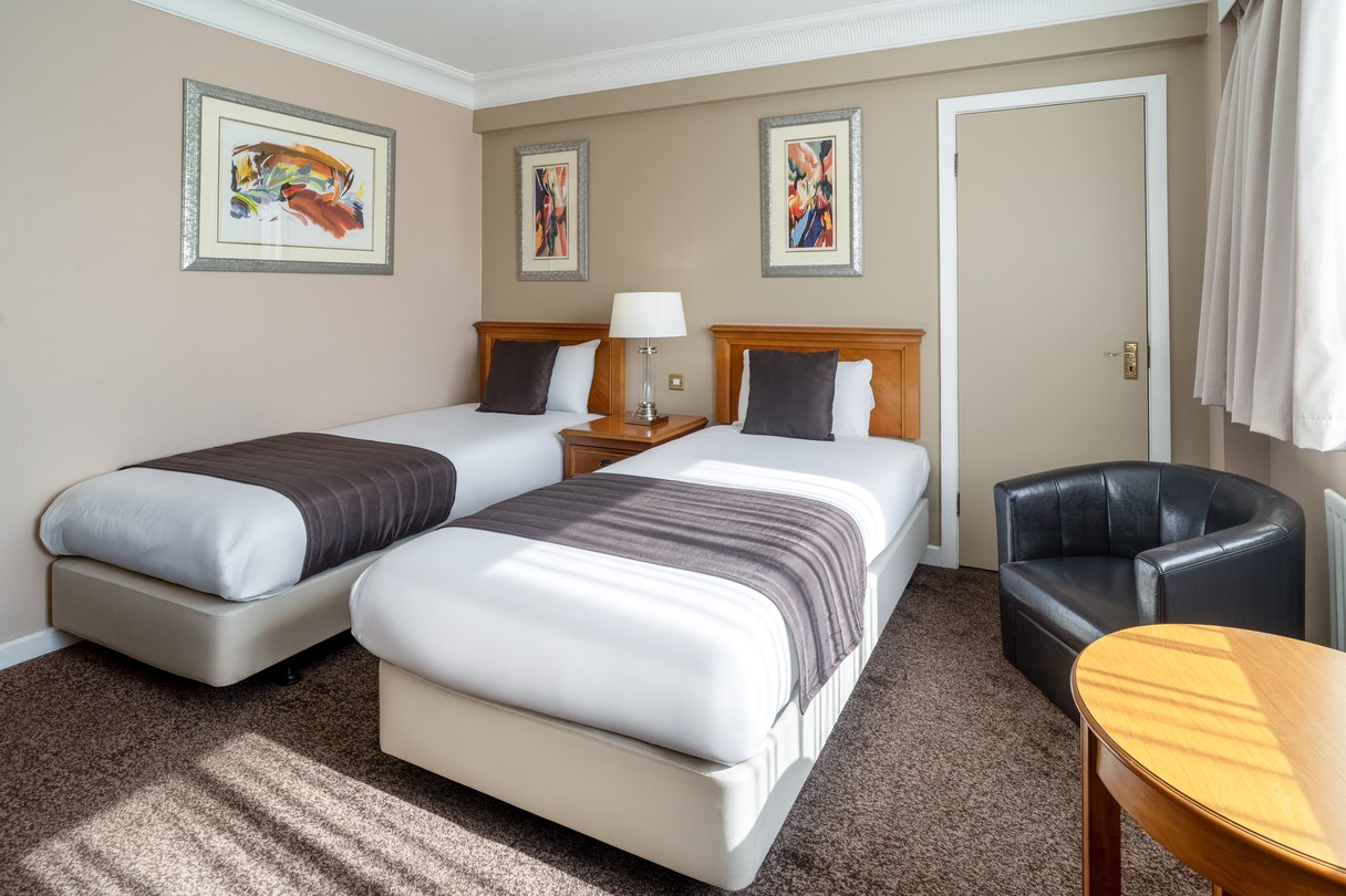 A comfortable Twin Room offering everything you need for a restful and enjoyable stay. Filled with natural light and stylish décor, it provides the convenience of complimentary Wi-Fi, a private en-suite bathroom, and in-room essentials including a television and other modern features. The room also presents a cosy carpeted layout and thoughtful details designed to make you feel at home.