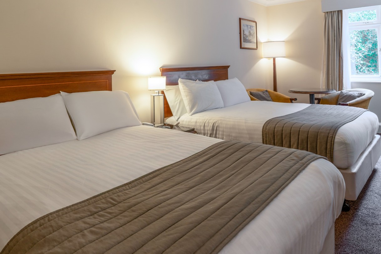 A spacious Family Room offering everything you need for a restful and enjoyable stay. Featuring two double beds, it is filled with natural light and stylish décor, and provides the convenience of complimentary Wi-Fi, a private en-suite bathroom, and in-room essentials including a television and other modern features. The room also presents extra space, a cosy carpeted layout, and thoughtful details designed to make you feel at home.