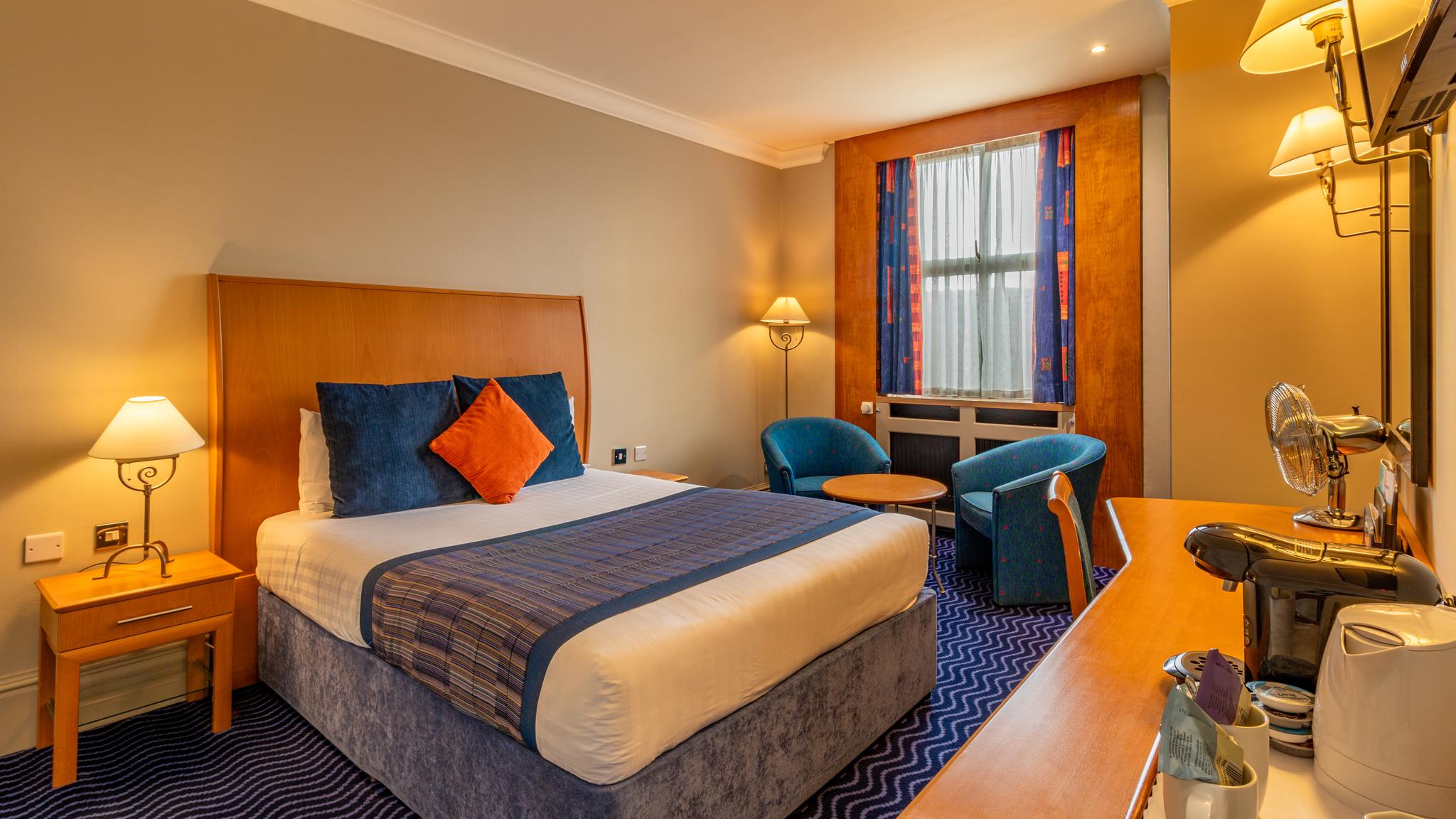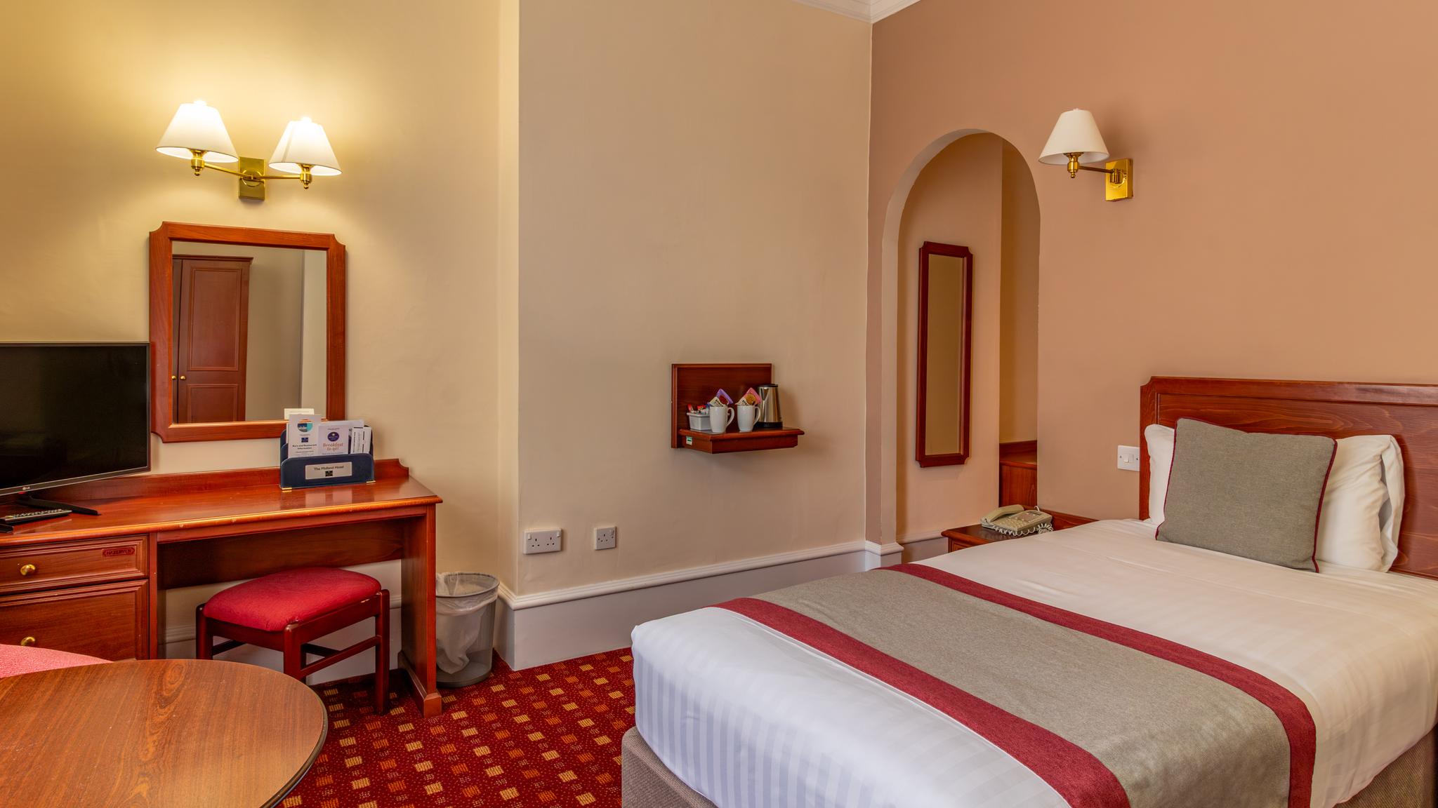 A comfortable Double or Twin Room, offering everything you need for a restful and enjoyable stay. Filled with natural light and stylish décor, it provides the convenience of complimentary Wi-Fi, a private en-suite bathroom, and in-room essentials including a television and other modern features. The room also presents a cosy carpeted layout and thoughtful details designed to make you feel at home.