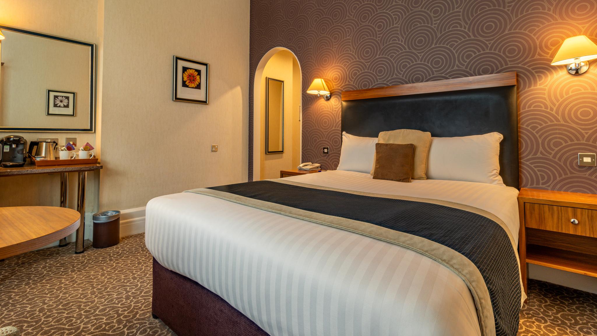 A stylish Double Room offering everything you need for a comfortable and enjoyable stay. Filled with natural light and elegant décor, it provides the convenience of complimentary Wi-Fi, a private en-suite bathroom, and in-room essentials including a television and other modern features. The room also presents a cosy carpeted layout and thoughtful details designed to enhance your experience.