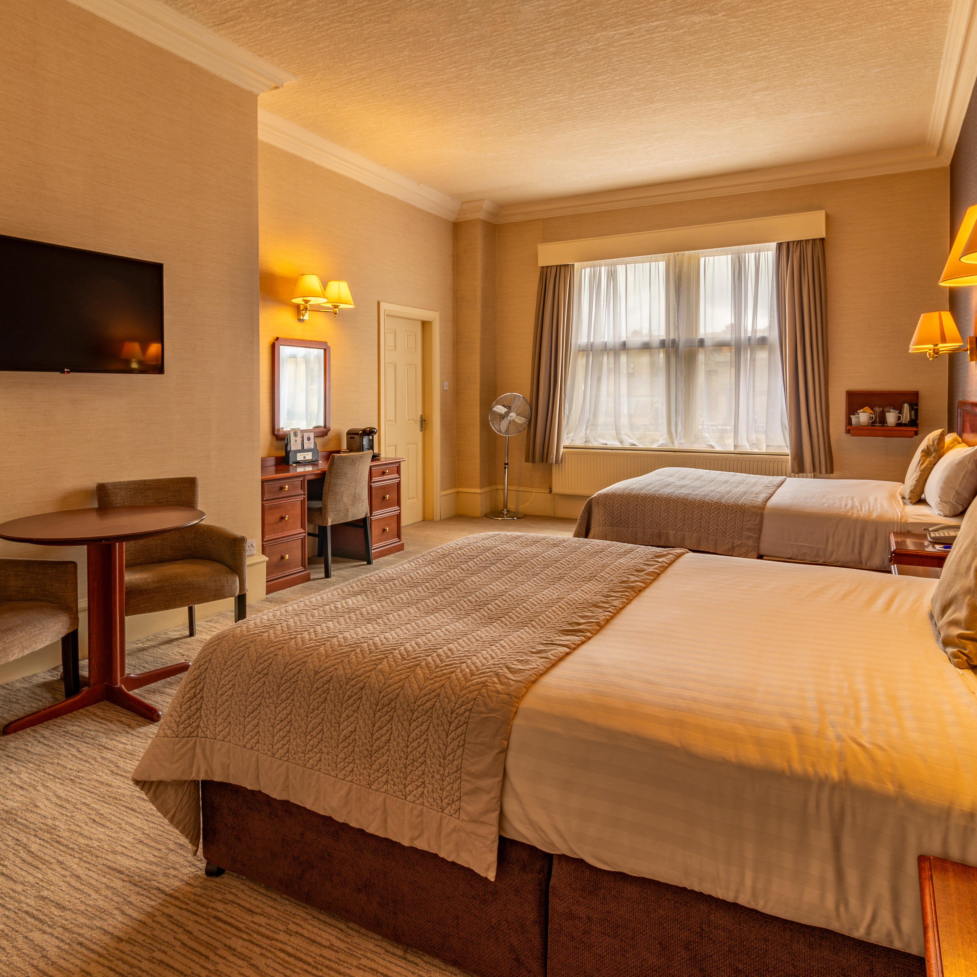A spacious Family Room offering everything you need for a restful and enjoyable stay. Featuring two double beds, it is filled with natural light and stylish décor, and provides the convenience of complimentary Wi-Fi, a private en-suite bathroom, and in-room essentials including a television and other modern features. The room also presents extra space, a cosy carpeted layout, and thoughtful details designed to make you feel at home.