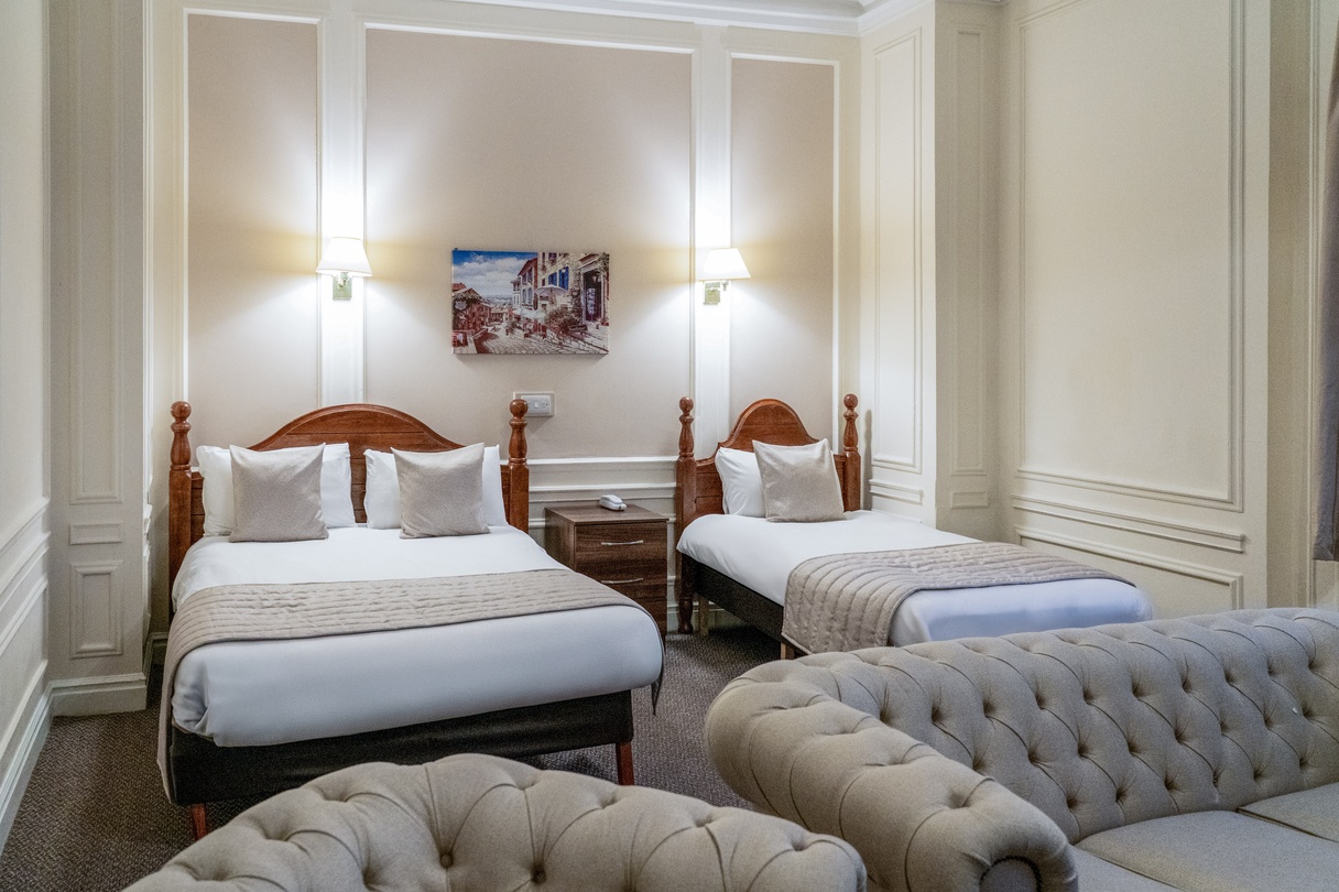 A comfortable Triple Standard Room offering everything you need for a restful and enjoyable stay. Designed with stylish décor and natural touches, it provides the convenience of complimentary Wi-Fi, a private en-suite bathroom, and in-room essentials including a television and other modern features. The room also presents a cosy carpeted layout and thoughtful details created to make you feel at home.